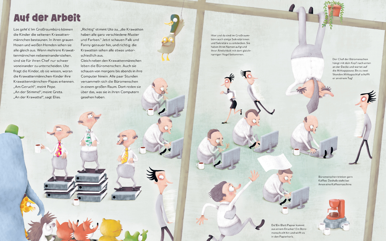 „Von Krawattenmännchen, Vielfraßen und Faulpelzinnen“ ist ein witziges Bilderbuch für Kinder von 4 bis 8 Jahren: Im Zoo beobachten die Tiere die Menschen – und entdecken allerlei komische Gewohnheiten. Die detailreichen Illustrationen laden zum Suchen, Zählen und Kichern ein, die knappen Texte funktionieren bestens zum Vorlesen.